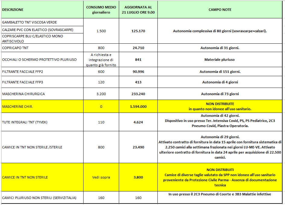 Giacenze dispositivi di protezione individuale 21 luglio 2020.png