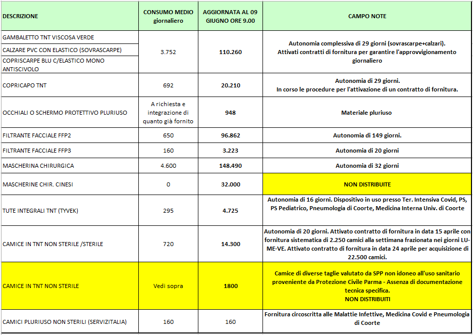 Giacenze dispositivi di protezione individuale 7 giugno 2020.png