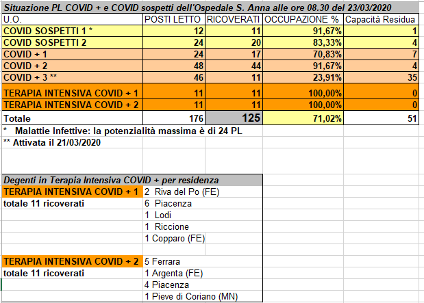 Situazione posti letto reparti Covid - 23 marzo - ore 8.30.png