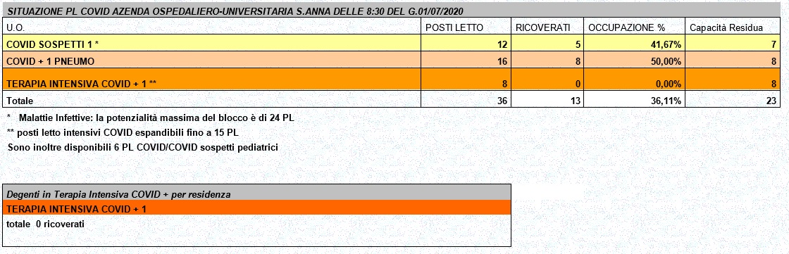 Situazione posti letto reparti Covid - 1 luglio 2020 - ore 8.30.jpg