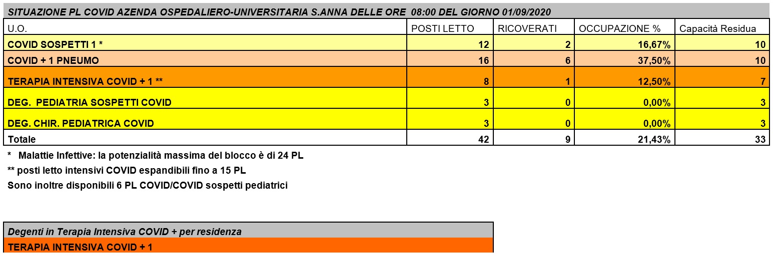 Situazione posti letto reparti Covid - 1 settembre 2020 - ore 8.30.jpg