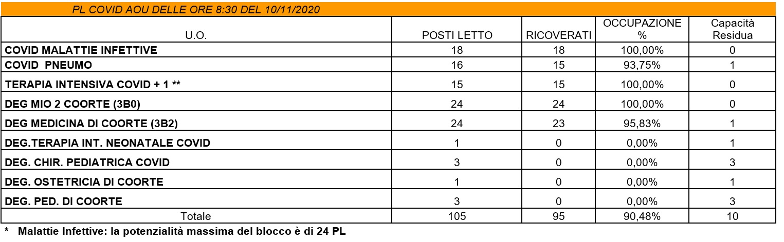 Situazione posti letto reparti Covid - 10 novembre 2020 - ore 8.30.jpg