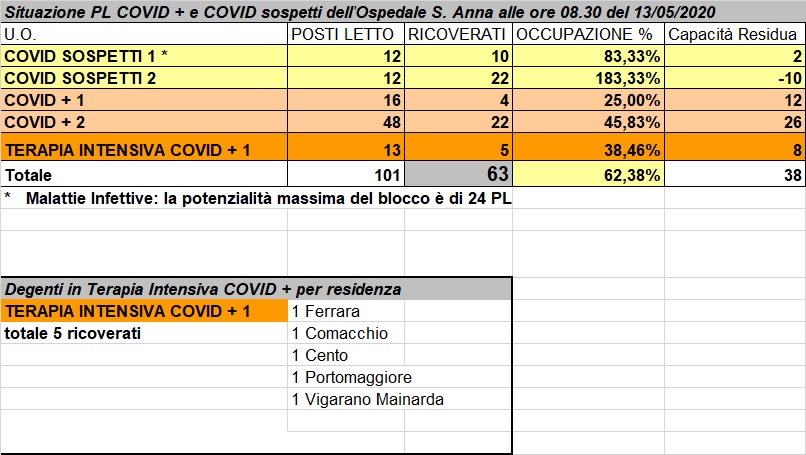Situazione posti letto reparti Covid - 13 maggio 2020 - ore 8.30.jpg
