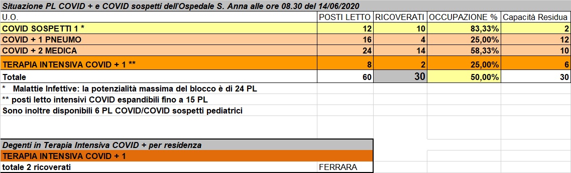 Situazione posti letto reparti Covid - 14 giugno 2020 - ore 8.30.jpg