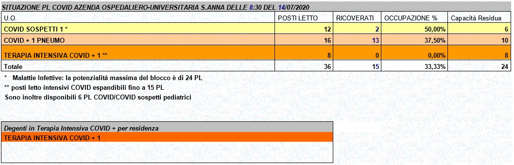 Situazione posti letto reparti Covid - 14 luglio 2020 - ore 8.30.jpg