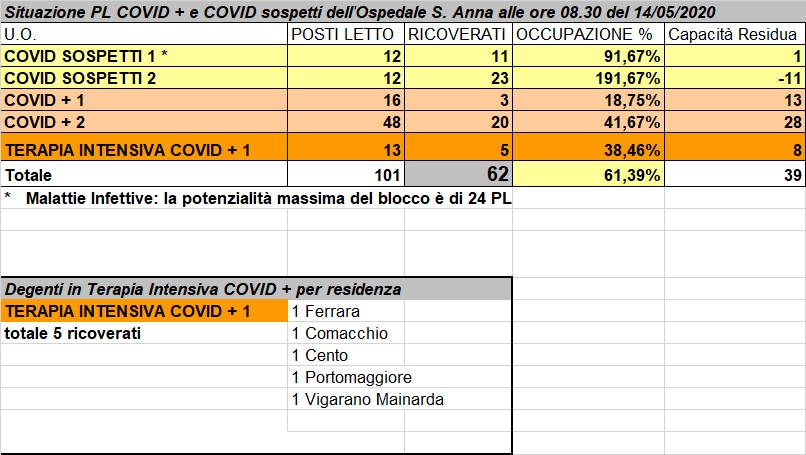 Situazione posti letto reparti Covid - 14 maggio 2020 - ore 8.30.jpg