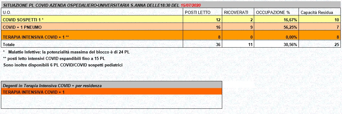 Situazione posti letto reparti Covid - 15 luglio 2020 - ore 18.30.jpg