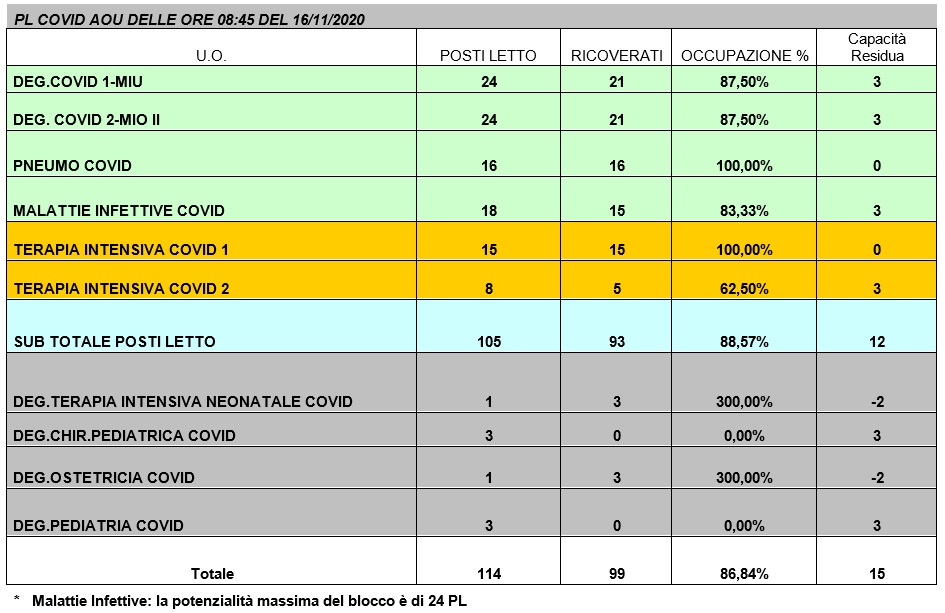 Situazione posti letto reparti Covid - 16 novembre 2020 - ore 8.30.jpg