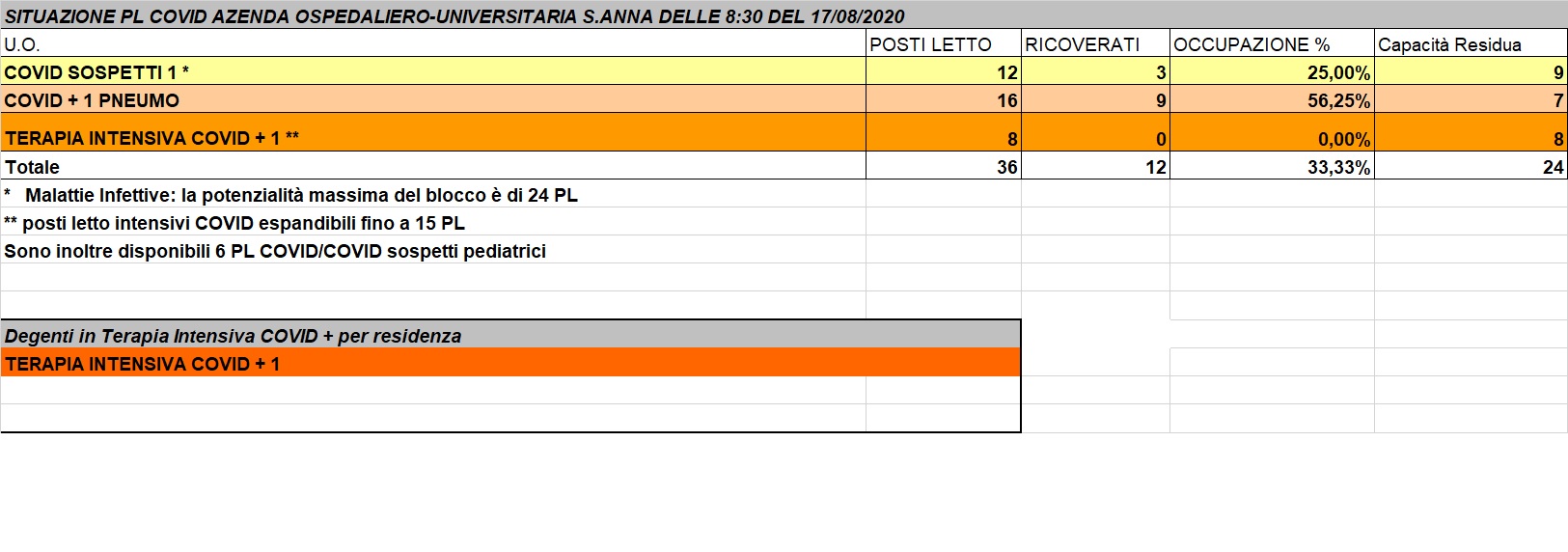Situazione posti letto reparti Covid - 17 Agosto 2020 - ore 8.30.jpg