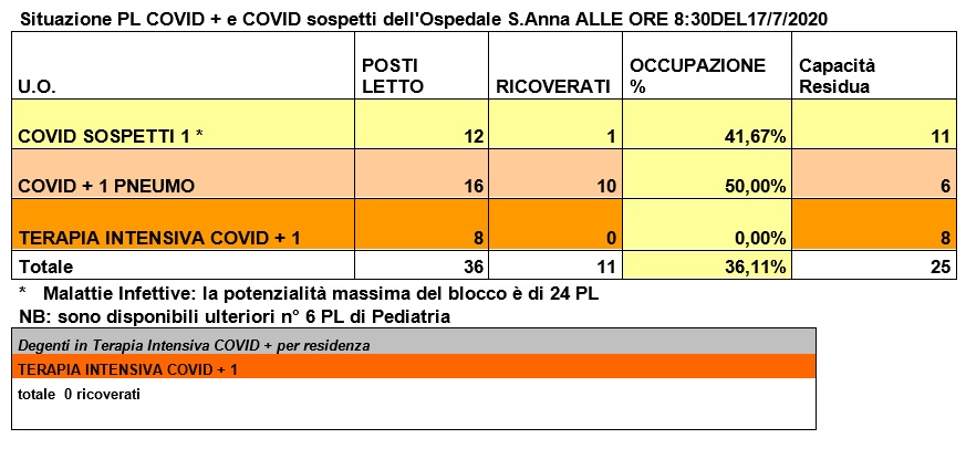 Situazione posti letto reparti Covid - 17 luglio 2020 - ore 8.30.jpg