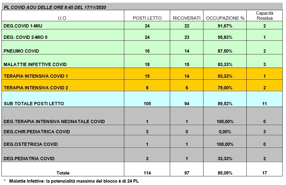 Situazione posti letto reparti Covid - 17 novembre 2020 - ore 8.30.jpg