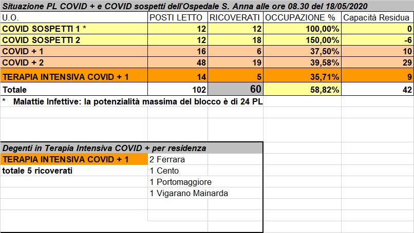 Situazione posti letto reparti Covid - 18 maggio 2020 - ore 8.30.jpg