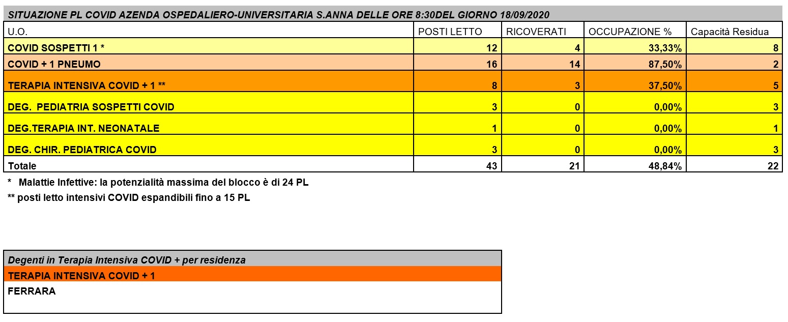 Situazione posti letto reparti Covid - 18 settembre 2020 - ore 8.30.jpg