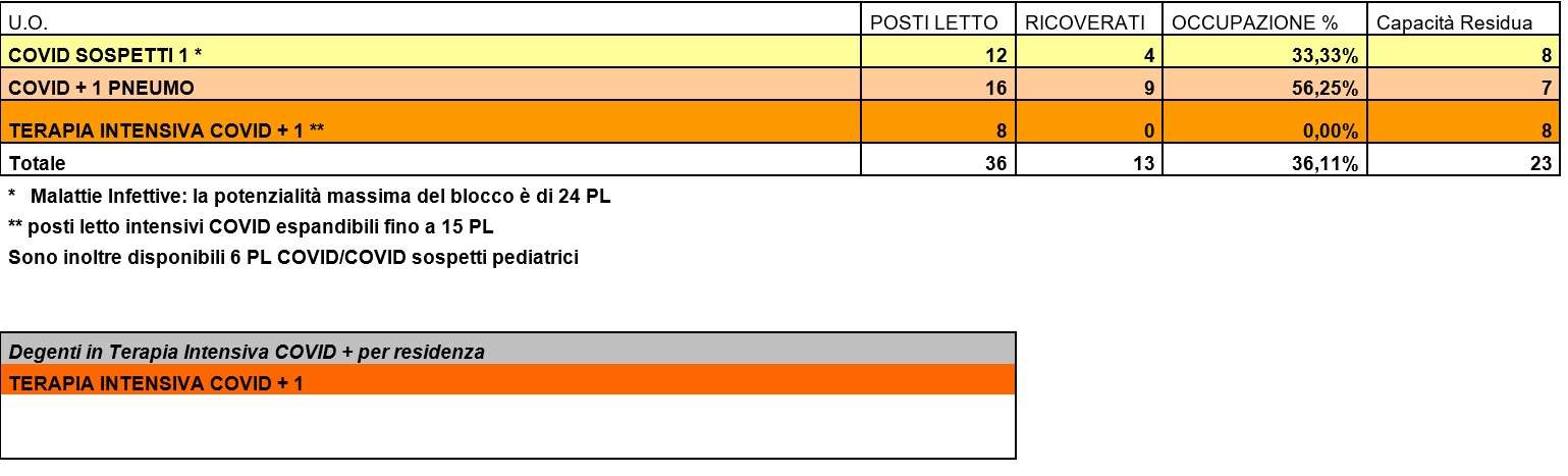Situazione posti letto reparti Covid - 19 Agosto 2020 - ore 8.30.jpg