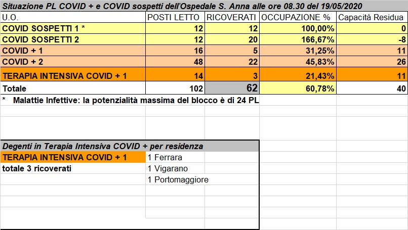 Situazione posti letto reparti Covid - 19 maggio 2020 - ore 8.30.jpg