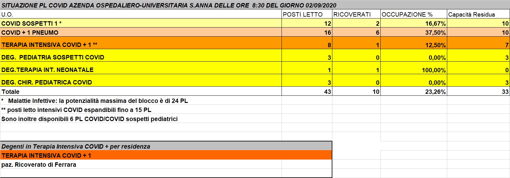 Situazione posti letto reparti Covid - 2 settembre 2020 - ore 8.30.jpg