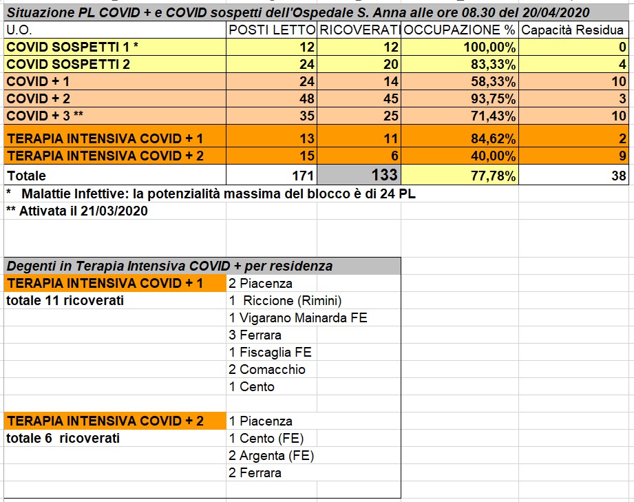 Situazione posti letto reparti Covid - 20 aprile 2020 - ore 8.30.jpeg