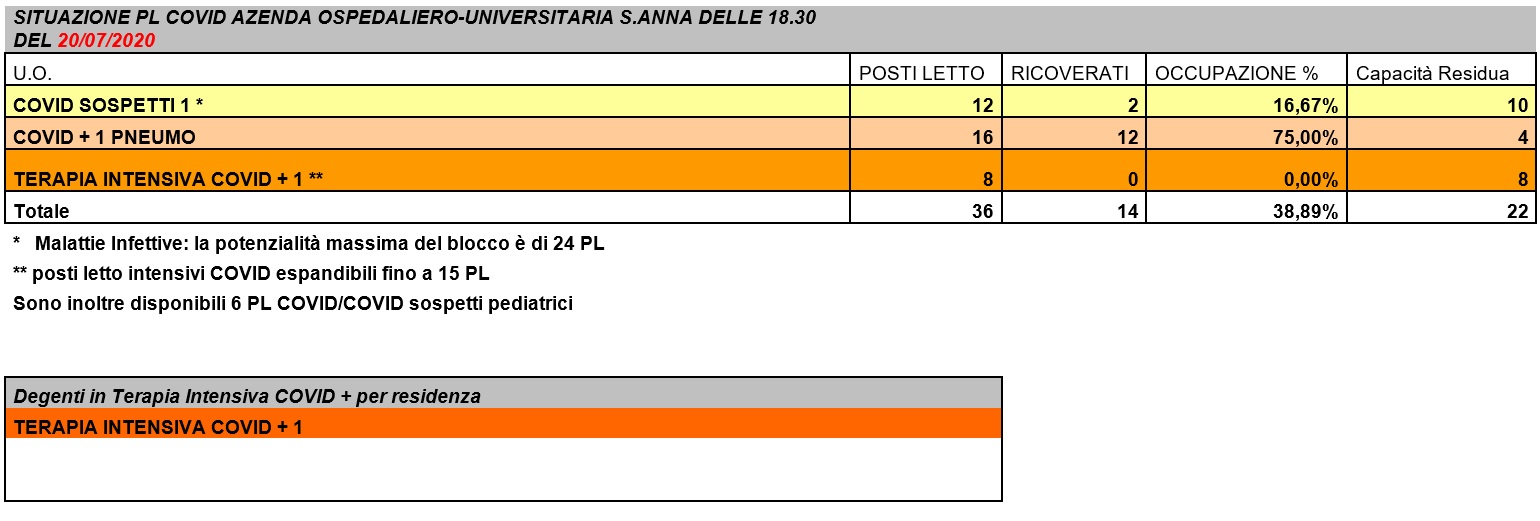 Situazione posti letto reparti Covid - 20 luglio 2020 - ore 18.30.jpg