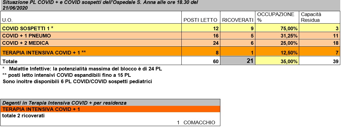 Situazione posti letto reparti Covid - 21 giugno 2020 - ore 18.30.jpg