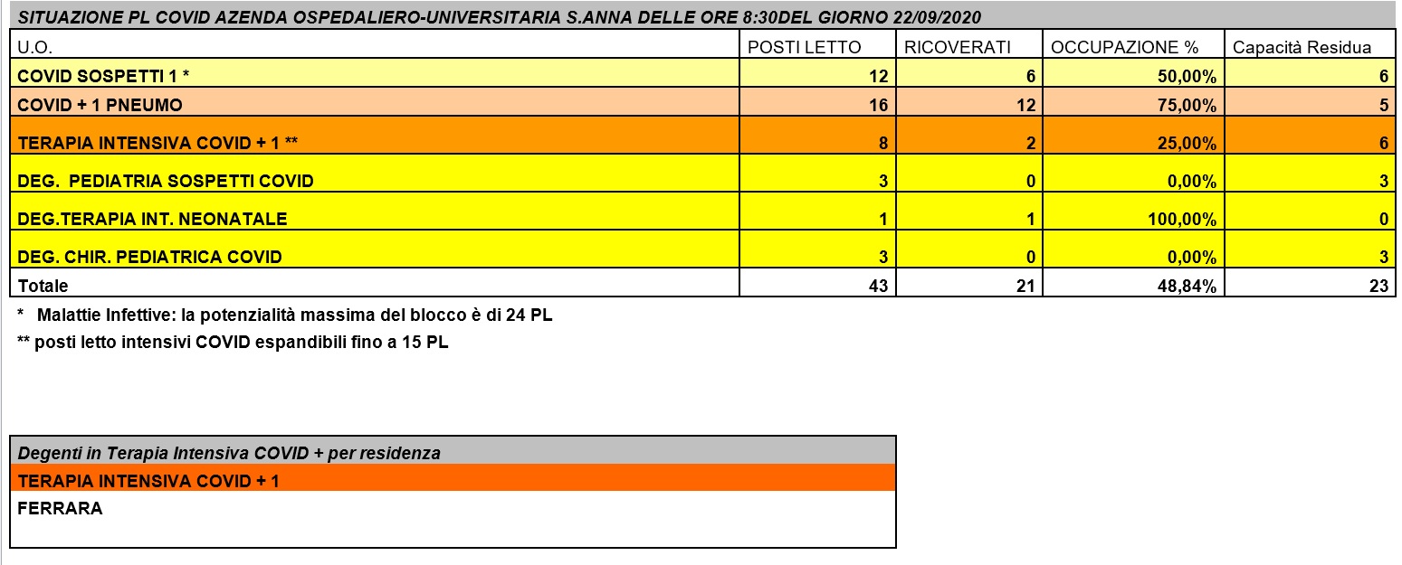 Situazione posti letto reparti Covid - 22 settembre 2020 - ore 8.30.jpg