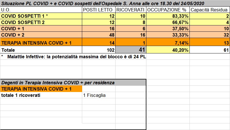 Situazione posti letto reparti Covid - 24 maggio 2020 - ore 18.30.jpg