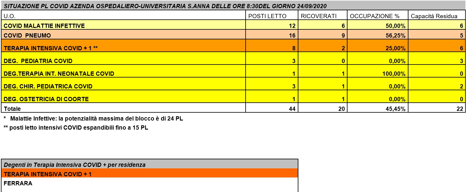 Situazione posti letto reparti Covid - 24 settembre 2020 - ore 8.30.jpg