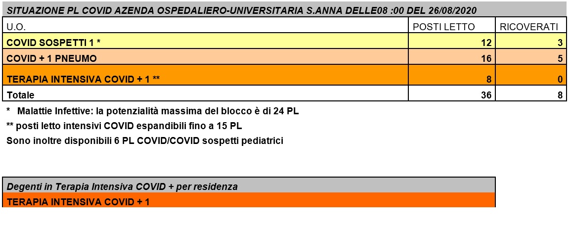 Situazione posti letto reparti Covid - 26 Agosto 2020 - ore 8.30.jpg
