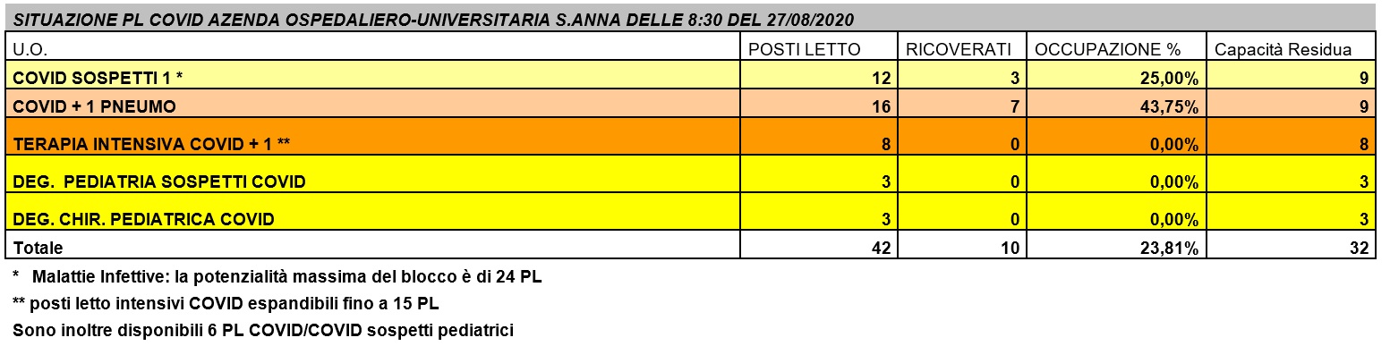 Situazione posti letto reparti Covid - 27 Agosto 2020 - ore 8.30.jpg