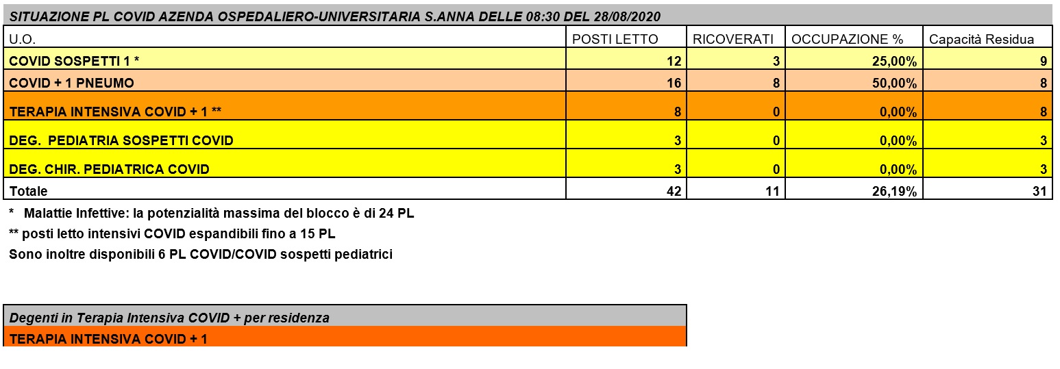 Situazione posti letto reparti Covid - 28 Agosto 2020 - ore 8.30.jpg