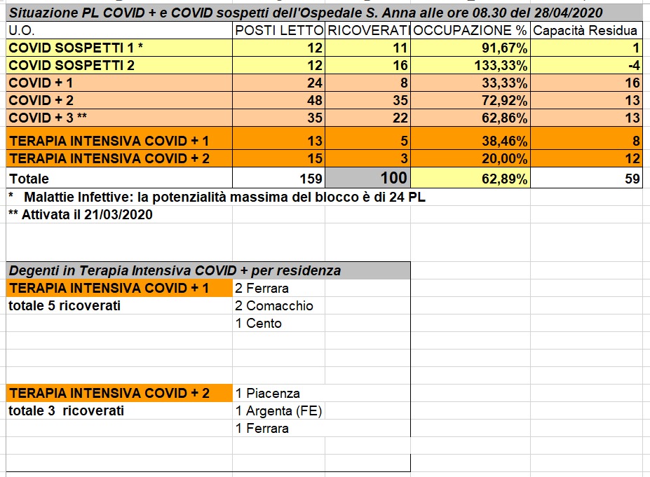 Situazione posti letto reparti Covid - 28 aprile 2020 - ore 8.30.jpeg