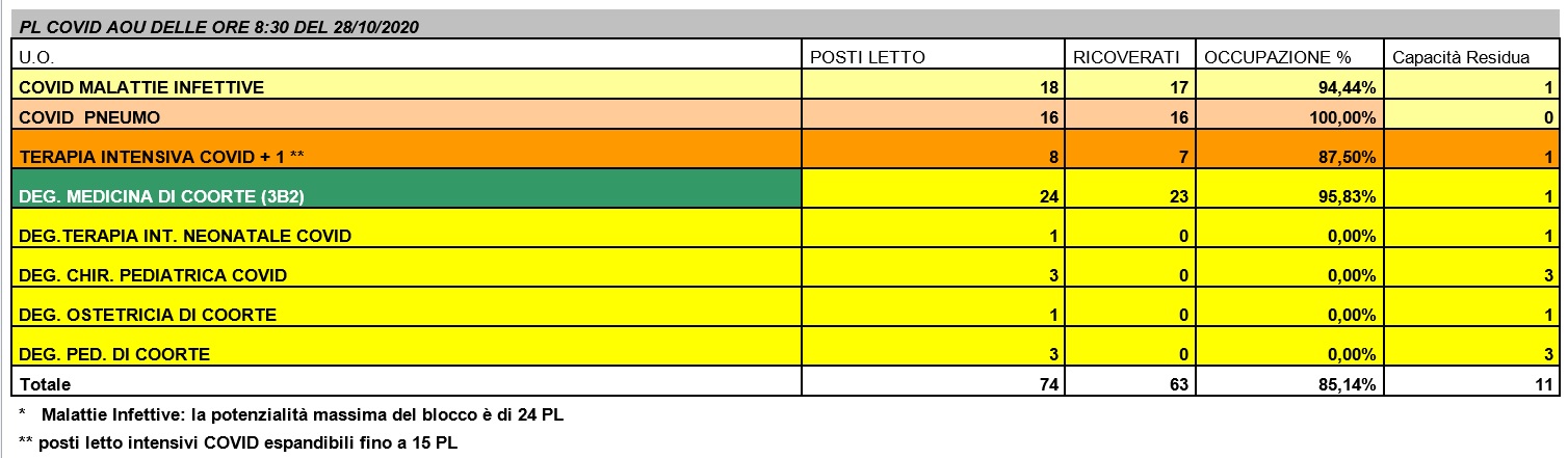 Situazione posti letto reparti Covid - 28 ottobre 2020 - ore 8.30.jpg