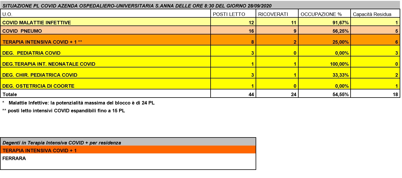 Situazione posti letto reparti Covid - 28 settembre 2020 - ore 8.30.jpg