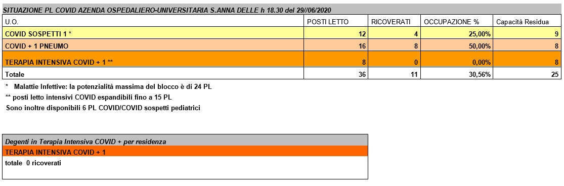 Situazione posti letto reparti Covid - 29 giugno 2020 - ore 18.30.jpg