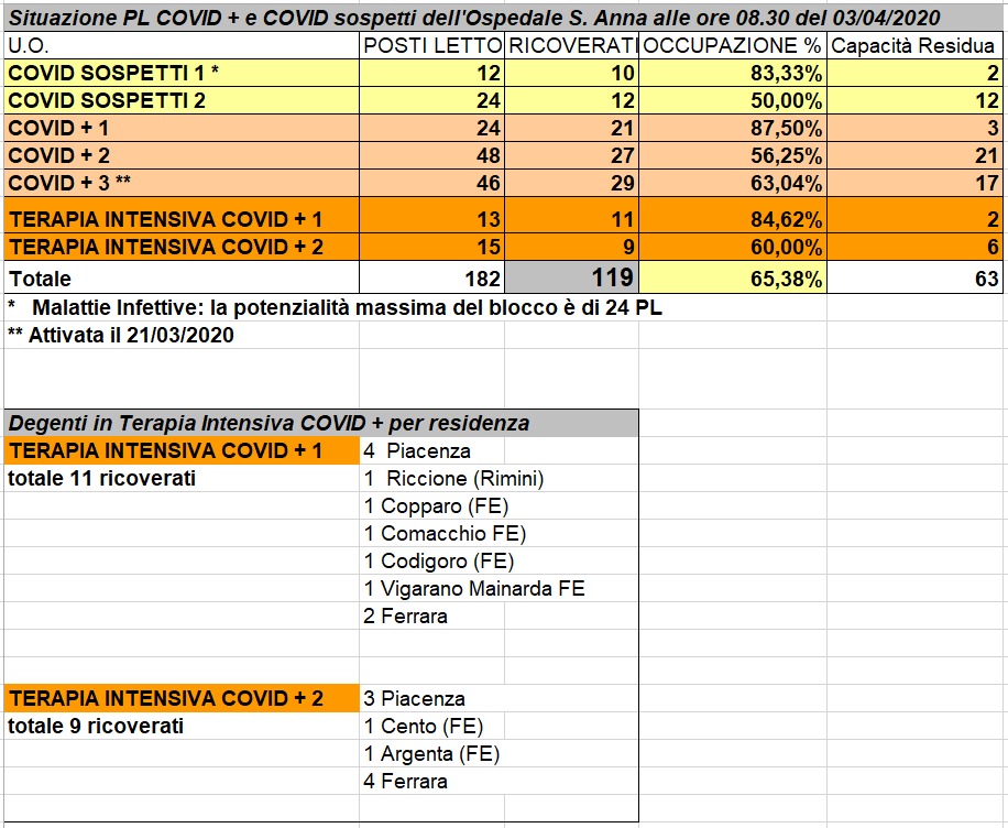 Situazione posti letto reparti Covid - 3 aprile 2020 - ore 8.30.jpeg