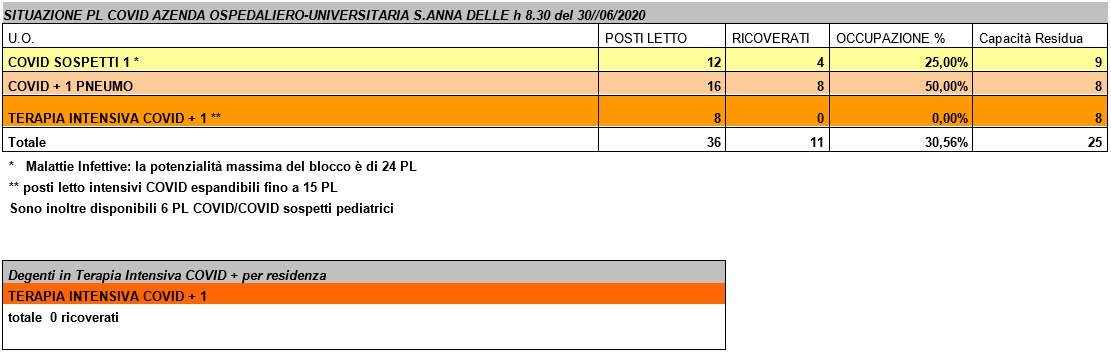 Situazione posti letto reparti Covid - 30 giugno 2020 - ore 8.30.jpg