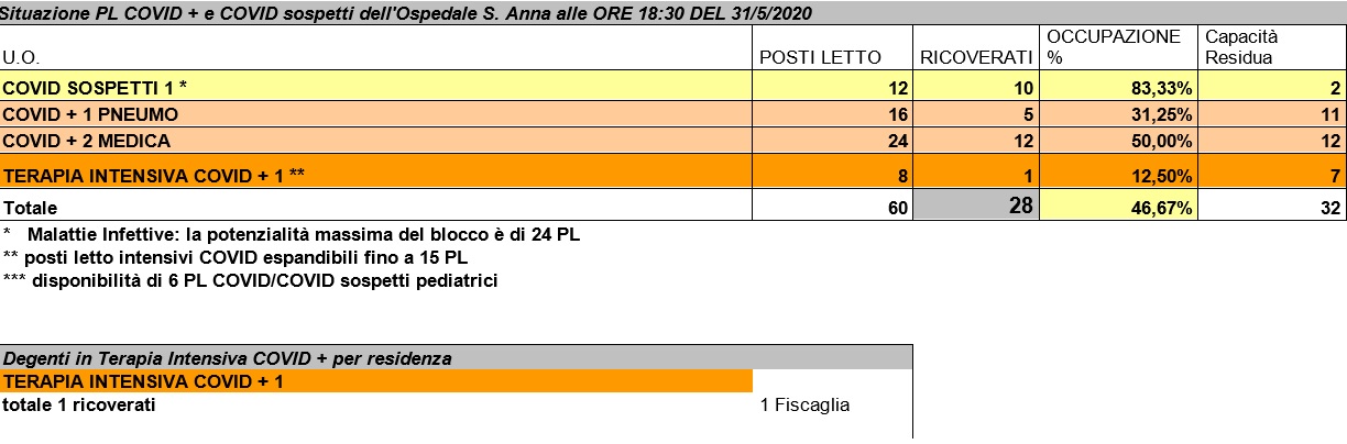 Situazione posti letto reparti Covid - 31 maggio 2020 - ore 18.30.jpg