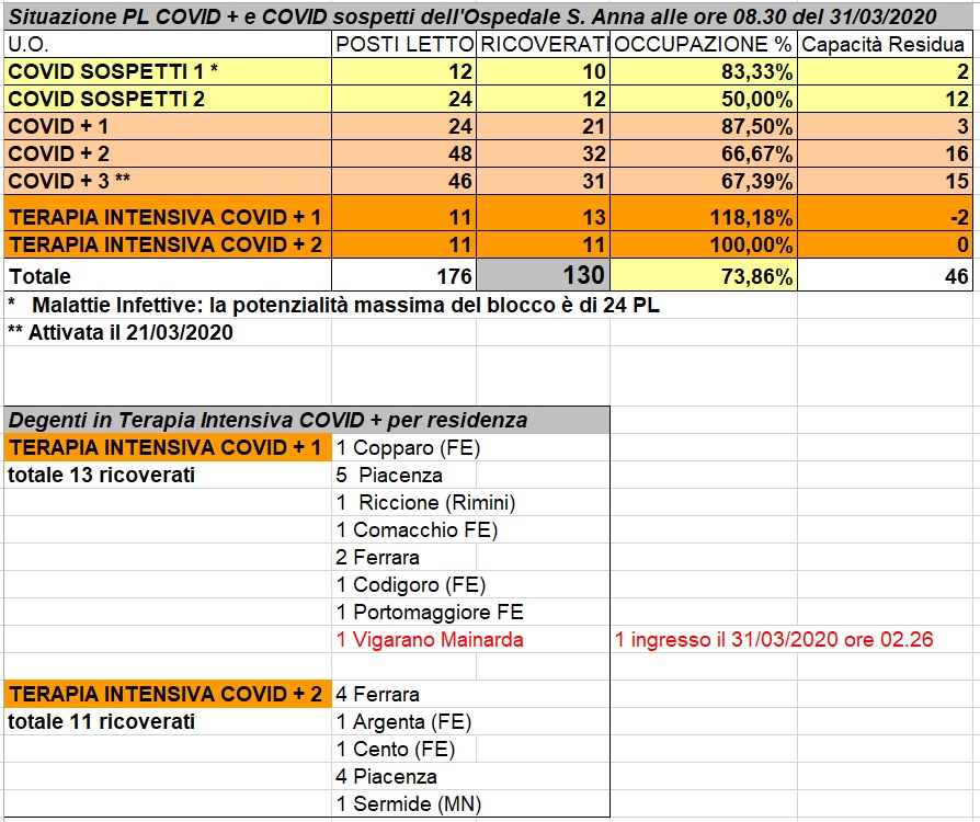 Situazione posti letto reparti Covid - 31 marzo 2020 - ore 8.30.jpeg