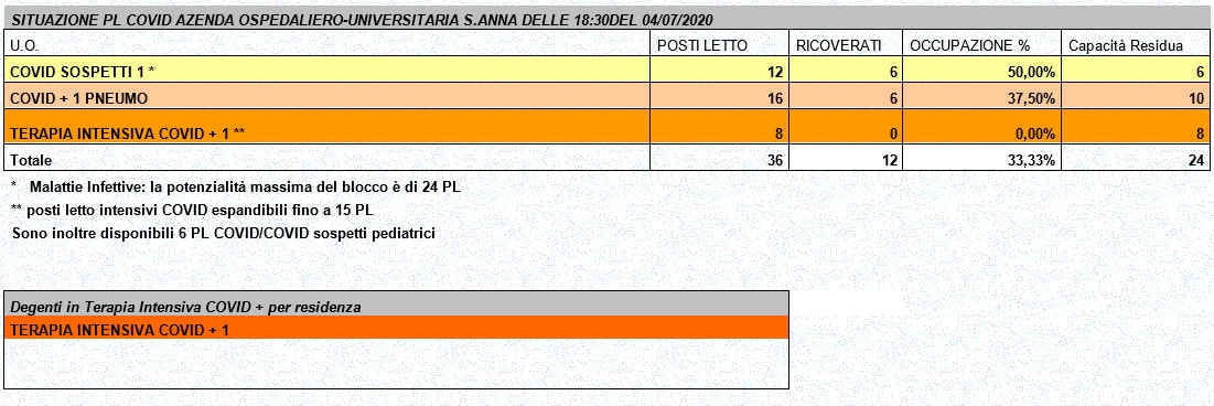 Situazione posti letto reparti Covid - 4 luglio 2020 - ore 18.30.jpg