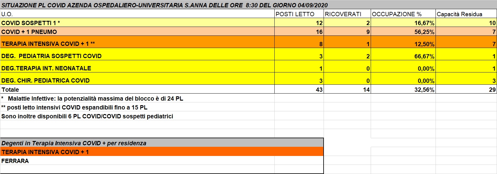 Situazione posti letto reparti Covid - 4 settembre 2020 - ore 8.30.jpg
