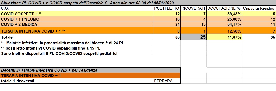 Situazione posti letto reparti Covid - 5 giugno 2020 - ore 8.30.jpg