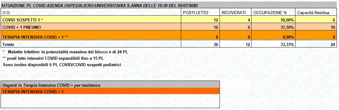Situazione posti letto reparti Covid - 5 luglio 2020 - ore 18.30.jpg