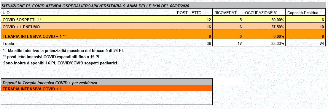 Situazione posti letto reparti Covid - 5 luglio 2020 - ore 8.30.jpg