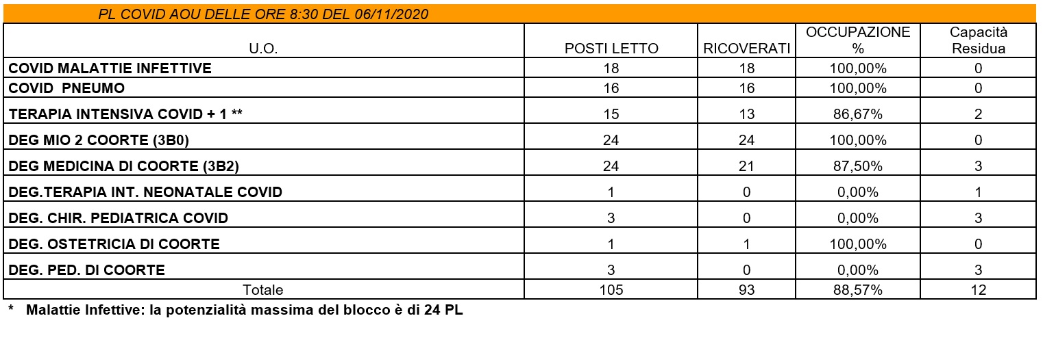 Situazione posti letto reparti Covid - 6 novembre 2020 - ore 8.30.jpg