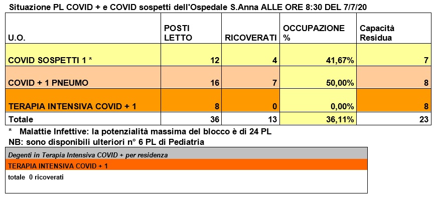 Situazione posti letto reparti Covid - 7 luglio 2020 - ore 8.30.jpg