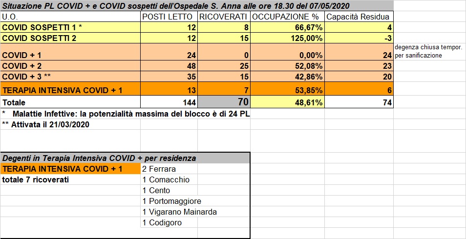 Situazione posti letto reparti Covid - 7 maggio 2020 - ore 18.30.jpg