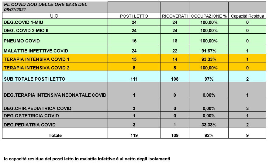 Situazione posti letto reparti Covid - 8 gennaio 2021 - ore 8.45.jpg