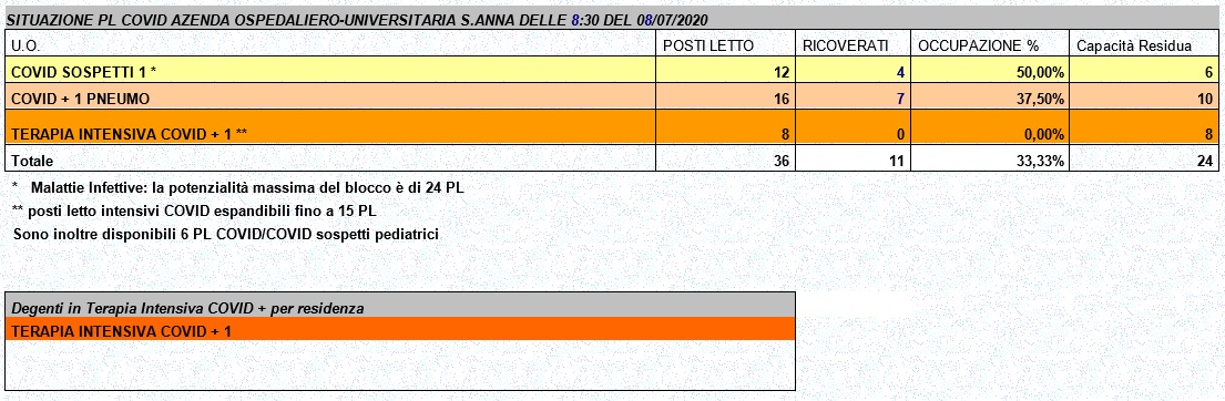 Situazione posti letto reparti Covid - 8 luglio 2020 - ore 8.30.jpg