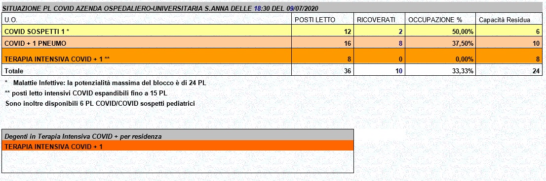 Situazione posti letto reparti Covid - 9 luglio 2020 - ore 18.30.jpg