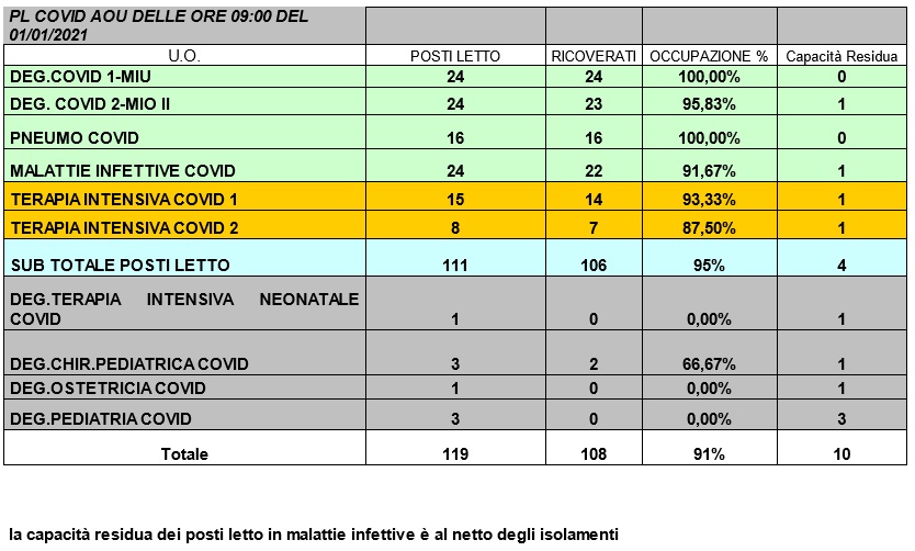Situazione posti letto reparti Covid -1 gennaio 2021 - ore 8.30.jpg