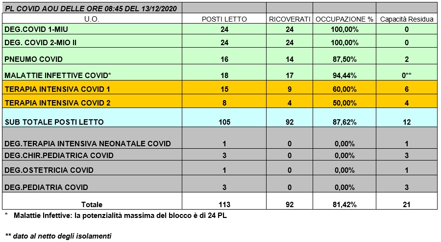 Situazione posti letto reparti Covid -13 dicembre 2020 - ore 8.45.jpg